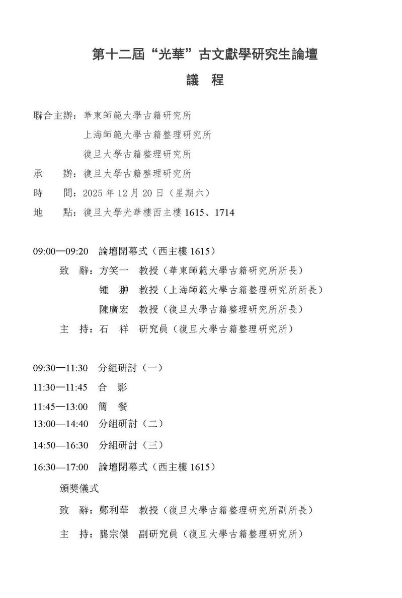 论坛预告|第十二届“光华”古文献学研究生论坛