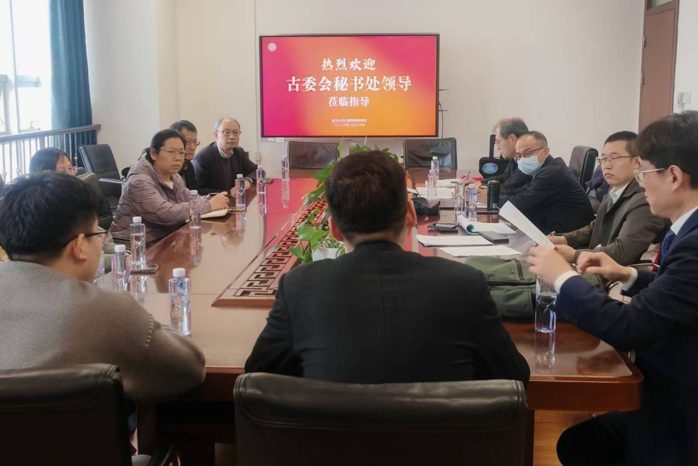 2026年3月30日下午,全国高等院校古籍整理研究工作委员会秘书处卢伟秘书长、王周谊副秘书长、徐志超秘书一行,莅临复旦大学古籍整理研究所调研指导。我所教师汇报了近期工作情况。古委会秘书处领导认真听取汇报后,对古籍所学科建设与人才队伍培养等相关工作提出了一系列指导意见。